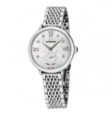 Eterna Women's 2801.41.66.1408 'Eternity' Mother of Pearl Diamond Dial Black Gros Grain Strap Small Seconds Quartz Watch