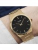 FEATURES : dressy men's wristwatch with a precise Miyota quartz movement black dial gold tone hands and indices matt-finished gold plated stainless steel case polished edges fluted crown mineral crystal matted gold plated stainless steel bracelet butterfly folding clasp with push-button-release water resistant to 5 bar width 40 mm height 8 mm weight 115 g comes in a Cluse watch packaging