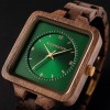 The Emerald Hill from the SQUARE Collection features an exclusive 36mm square case combined with a green double layered dual dial. This uniquely designed watch consists of natural Walnut Wood from North America with golden details and is handcrafted to perfection.