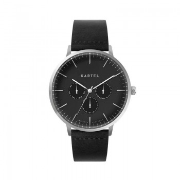 The new Cuillin calendar watch is a premium addition to the Kartel range. A large 43mm black stainless steel case features a black dial with 3 two-layer sub dials tracking the day, date and 24 hour position, beneath toughened low profile mineral glass.