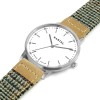 This KT-HUME 40mm-SWTR model watch features a combination of 40mm silver case with white dial on a brown check pattern cashmere leather strap.