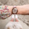 The Odyssey Women's Walnut Pink watch is made of natural walnut wood. The dial is cut from natural walnut wood and detailed with rose gold markings and Roman numerals at 6 and 12 o'clock. Paired with a pink genuine leather band.