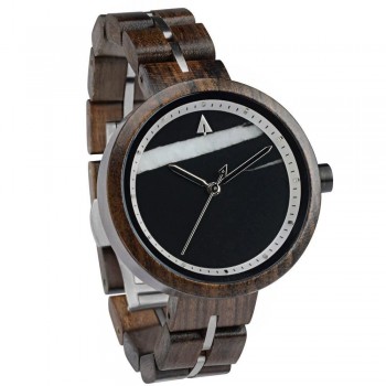 The CLASSIC Collection rethinks the aesthetic of a WoodWatch in a sophisticated way. The slim cases give a classy impression while featuring a unique a moonphase movement and two extra subdials featuring a week and month display. The CLASSIC Maverick Pecan is made of Teak Wood from East Asia and features a matte black dial with silver-colored details.